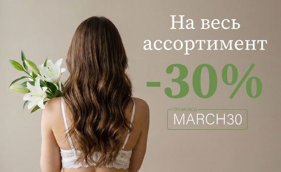 Скидка 30% на ВЕСЬ ассортимент, промокод MARCH30.